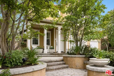 Welcome to this stunning residence situated within the highly sought-after gated community of Westridge in Valencia. Upon entry, you are greeted by soaring double-height ceilings and an abundance of natural light that flows effortlessly throughout the home, creating a warm and inviting atmosphere. This spacious floor plan features 5 bedrooms and 3 full bathrooms, including a desirable downstairs bedroom, currently used as a den and a full bath perfect for guests or multi-generational living. The open-concept design connects the formal dining room, cozy family room, and chef's kitchen, making it ideal for entertaining. The white and bright kitchen is beautifully appointed with a large island, built-in refrigerator, dishwasher, and custom cabinetry with pull-out drawers. French doors open to a private backyard retreat featuring a sparkling pool, tranquil fountains, and a large patio space designed for effortless indoor-outdoor living. Additional highlights include hardwood flooring, wood shutters, crown molding, a pre-hardwired security system, a downstairs laundry room with washer and dryer, and a spacious 2-car garage with direct entrance. Enjoy resort-style amenities including two Jr. Olympic-size pools, spas, a clubhouse, parks, tennis courts, basketball courts, and BBQ areas all with no Mello Roos and a low HOA. Located within walking distance to top-rated schools, golf at The Oaks Club, shops, dining, and just minutes from the 5 Freeway, this home truly has it all.