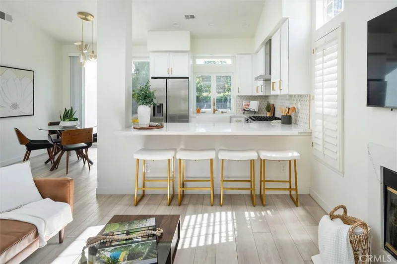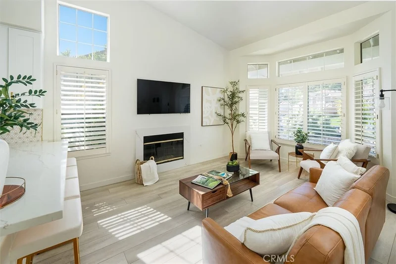 This beautifully updated single-story Northbridge home in the desirable Country Gate neighborhood showcases a fully remodeled open-concept kitchen, upgraded bathrooms, PEX re-pipe, newer roof and HVAC, luxury vinyl flooring throughout, low HOA, and No Mello Roos. Located on a cul-de-sac with direct paseo access, this 2 bedroom, 2 bathroom home sits on a 7,299 sq ft pool size lot and includes an attached 2 car garage. The kitchen was completely transformed by removing the wall between the living room and kitchen to create a true open layout. Upgrades include new quartz countertops, all new cabinetry, new sink, new range and hood, built-in microwave, under-counter wine refrigerator, a raised ceiling with recessed lighting, a new casement window over the sink, and a new sliding glass door leading to the backyard. Both bathrooms have been beautifully remodeled. The primary bathroom features a dual-sink vanity, walk-in shower with rainfall shower head, new toilet, and a raised ceiling with recessed lighting. The secondary bathroom includes a new vanity, mirror, toilet, and a newly refinished tub enclosure. The garage offers an electric-car charger outlet and is pre-plumbed for a future sink. Laundry has been relocated to the garage for added interior space. The spacious backyard features retaining walls, a newer sprinkler system, and ample room for a future pool. HOA amenities include a pool, clubhouse, tennis courts, and playground. Zoned for Helmers Elementary, Rio Norte Junior High, and Valencia High School.