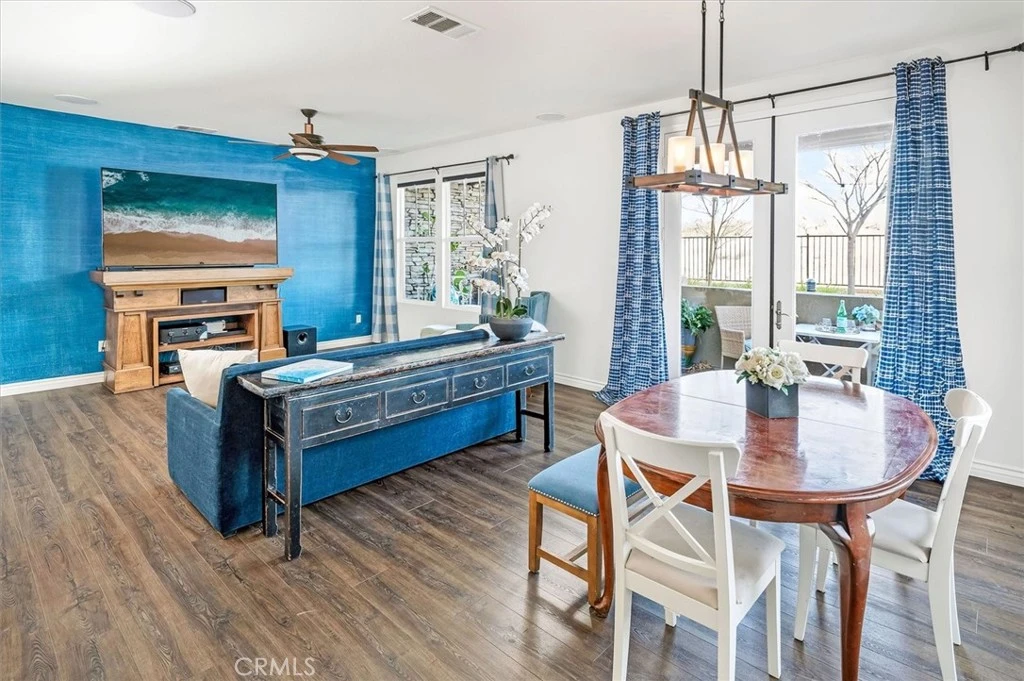 Fabulous Upgraded Valencia Home located in the Prestigious West Creek Community with Captivating Views! As you enter this Stunning Home you are in awe with the Light & Bright Open Floor Plan. This Incredible Home has 3 Large Bedrooms, Loft (Could be 4th Bedroom), 3 Bathrooms, Approx. 2,100 Sq. Ft. Large Upgraded Kitchen with Granite Counter Tops, Upgraded Appliances (Fridge, Microwave & Bosch Dishwasher), Pull Out Drawers, lots of counter space & Breakfast Bar. Perfect for Casual Dining or Entertaining! Formal Dining Area, Large Great Room with Upgraded Ceiling Fan, Surround Sound & French Door that leads to the Entertainer’s Private Patio with Breathtaking Views. Large Primary Bedroom with Custom Walk-In Closet Organizers. Large Primary Bathroom with Separate Tub & Shower. Additional highlights include Gorgeous Upgraded Flooring, Plantation Shutters, Upgraded Cabinets, Recessed Lighting, Upgraded Window Treatments, Ceiling Fans, Newer Washer & Dryer, Newer Water Heater, Recently Professionally Painted and Newer A/C Unit. 2 Car Garage with Shelving Storage Racks. Some portion of the photos have been virtually staged. Close proximity to Award Winning Schools (West Creek Academy & Rio Norte Jr. High), Shopping, Restaurants, and Easy Freeway Access. Resort Style West Creek Community Amenities include Pool, Clubhouse, Sports Courts and Scenic Trails.