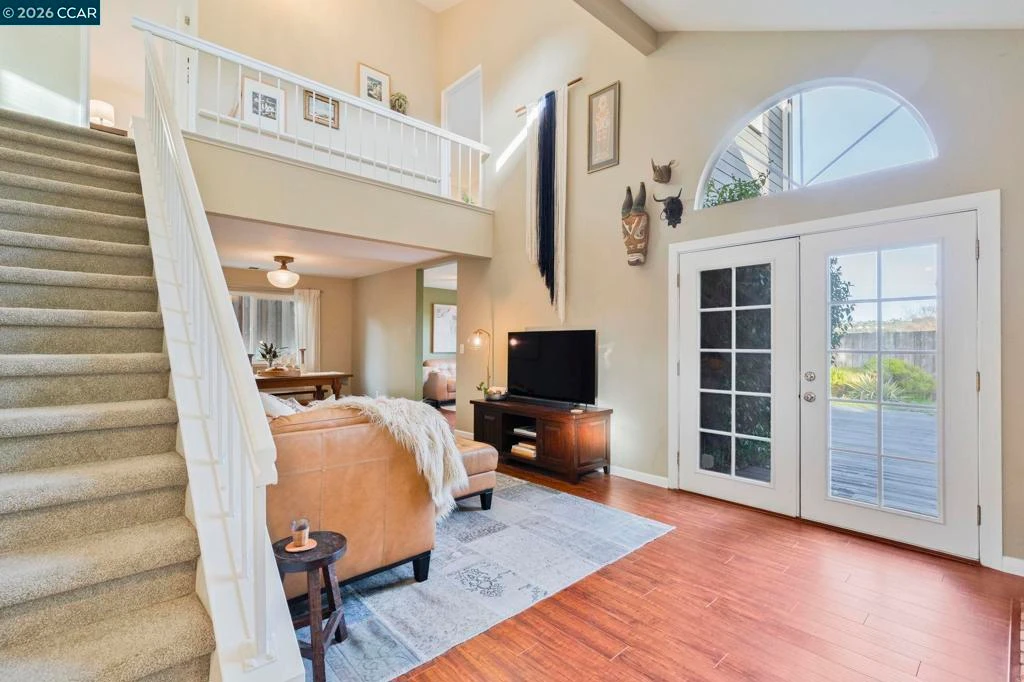 Welcome to this stunning and immaculately maintained 4 bedroom, 2.5 bathroom home in the highly sought after Glen Cove adjacent Meadowood Subdivision. Offering 1,565 square feet of inviting living space, this thoughtfully updated residence blends warmth, style, and comfort with undeniable curb appeal. The cozy living room fireplace creates the perfect gathering space, complemented by soaring vaulted ceilings that fill the home with natural light and an airy, open feel. Rich engineered hardwood floors highlight the living and dining areas, while the upstairs bedrooms and hallway feature soft, plush carpeting for added comfort. A new roof along with newer central heat and air ensure year round peace of mind. Step outside to a large, beautiful deck overlooking a lush, landscaped backyard with captivating views, creating a private retreat ideal for entertaining, gardening, or quiet reflection. The overall vibe feels like an artist’s retreat, inspiring creativity and calm in every corner. Conveniently located near downtown Vallejo and Benicia, this exceptional home offers both tranquility and accessibility in one remarkable setting.