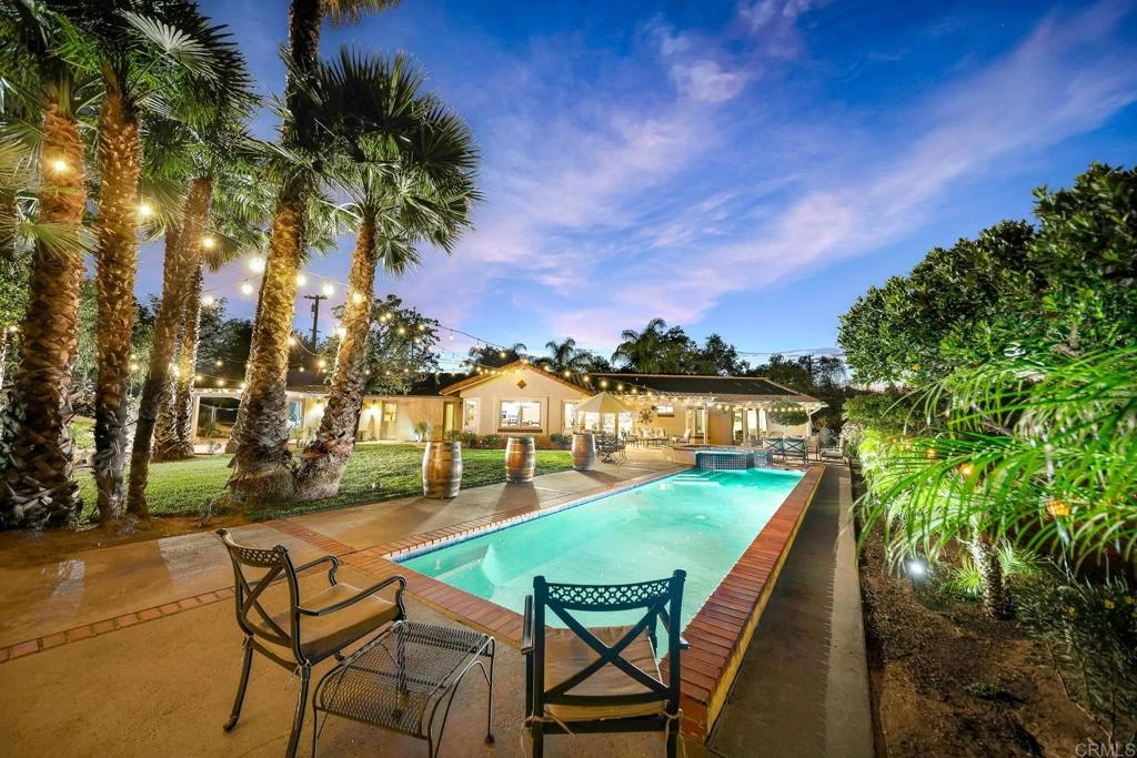 Tucked beneath a majestic, ancient oak and framed by sweeping views of Palomar Mountain, there exists a place where everyday life feels just a little more magical… Welcome to 30349 & 30351 Cool Valley Lane, a rare and enchanting 3.24-acre estate where possibility, beauty, and serenity intertwine. As you arrive, the land opens up like a private sanctuary. Sunlight dances through the branches of the grand oak, and a sense of calm settles in. The main residence unfolds with warmth and elegance—3,492 square feet of thoughtfully designed living space where gatherings come naturally and memories are made effortlessly. The expansive open kitchen flows seamlessly into the family room, anchored by a cozy fireplace, creating the perfect setting for connection and celebration. Pella windows invite the outdoors in, filling every corner with natural light and capturing the surrounding landscape like living art. With four spacious bedrooms, three bathrooms, a dedicated office, and a walk-in pantry, the home balances functionality with comfort. Luxury vinyl flooring carries you throughout, while outside, your own private oasis awaits—sparkling pool, soothing jacuzzi, and endless space to entertain under the stars. This is truly an entertainer’s paradise. Just beyond, like a hidden chapter in this story, sits the guest home at 30351 Cool Valley Lane, a beautifully appointed 1,400 sq ft retreat with three bedrooms, two bathrooms, a two-car garage, and its own fenced yard. Currently generating $3,200 per month, it offers an incredible opportunity for income, extended family, or a private escape for guests. The grounds themselves invite a slower, richer way of living—complete with a chicken coop, animal enclosure, and room to roam. Whether you envision a multi-generational family compound, an investment opportunity, or your own peaceful haven, this property offers a rare blend of versatility and charm. Here, mornings begin with golden light over the hills, afternoons are spent poolside in total privacy, and evenings end beneath a sky full of stars. This is more than a property… it’s a lifestyle, a retreat, and a story waiting to be lived.