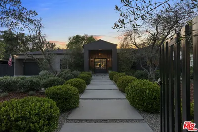 Located in the heart of the highly sought-after Valley Village neighborhood, 11734 Huston St is a luxurious home that seamlessly blends timeless elegance with modern sophistication. A custom Dutch front door opens into a warm, inviting interior featuring rich hardwood floors and a distinctive exterior clad in 100-year-old reclaimed Montana wood, bringing historic character and craftsmanship to every detail. The gourmet kitchen is a true showpiece, outfitted with marble countertops, Restoration Hardware lighting, Farrow & Ball paint, a farmhouse sink, Bertazzoni 8-burner range, and non-lacquered brass fixtures including a kitchen pot filler by DeVol of London. A solid walnut wine cellar is discreetly tucked beneath the staircase, ideal for collectors and entertainers alike. Vaulted ceilings enhance the home's spacious and airy feel, complemented by a main-level bedroom perfect for guests or use as a home office. Additional highlights include a generous walk-in pantry and a laundry room with chute. Upstairs, the primary suite offers a private balcony with scenic views, a large walk-in closet, and a double vanity bathroom. A guest bedroom with en-suite bath and two additional bedrooms with a shared bathroom complete the upper level. The backyard is a private oasis designed for both relaxation and entertaining, featuring a pristine pool and spa, cabana with fireplace and TV wiring, pergola, and a built-in BBQ with refrigerator. This thoughtfully designed residence is a rare offering in one of the Valley's most desirable neighborhoods, conveniently located near Valley Village Park, close to the shops and cafes of Tujunga Village, and within the Colfax Charter School district.