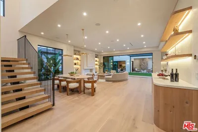Introducing this breathtaking, one-of-a-kind home that blends sculptural architecture with warm organic materials for a serene, modern living experience. This custom-built home is situated within the highly esteemed Colfax Charter School District. Boasting 5BD/5.5BA, the property also includes a spacious casita offering open living space with an additional bedroom and bathroom. Upon entering the home, you're welcomed by hand plastered walls, curved aesthetics, and continuous wide-plank oak flooring that guides you through sun-filled spaces. The chef's kitchen is an organic showcase, centered around a gently rounded island, sculpted curved ceiling, rustic oak cabinetry, marble countertops, high-end appliances, and a walk-in pantry. The expansive family room features a sculpted fireplace wrapped in hand-finished brushed plaster and rustic curved shelving that enhances the warmth and texture of the space. Large sliding doors create a seamless transition between indoors and outdoors, revealing a resort-like sanctuary with a shimmering pool, spa, covered patio with a seating area and fireplace, and an outdoor cooking area, surrounded by lush greenery for ultimate privacy. The lower level features a cozy movie theater, an ensuite guest bedroom, and a powder room. Upstairs, the primary suite becomes a retreat of its own, boasting a softly rounded fireplace, a generous walk-in closet, and a large balcony with views of the tranquil, tropically landscaped yard. The spa-inspired primary bathroom offers a soaking tub, walk-in shower, and dual vanities finished in micro-cement and natural stone. Three additional ensuite bedrooms and a large laundry room complete the upper level. Enhanced with premium features including Control4 smart technology, whole-home surround sound, a security system with cameras, and energy-efficient solar panels, this home is both luxurious and thoughtfully connected. Located in the highly coveted community of Valley Village.
