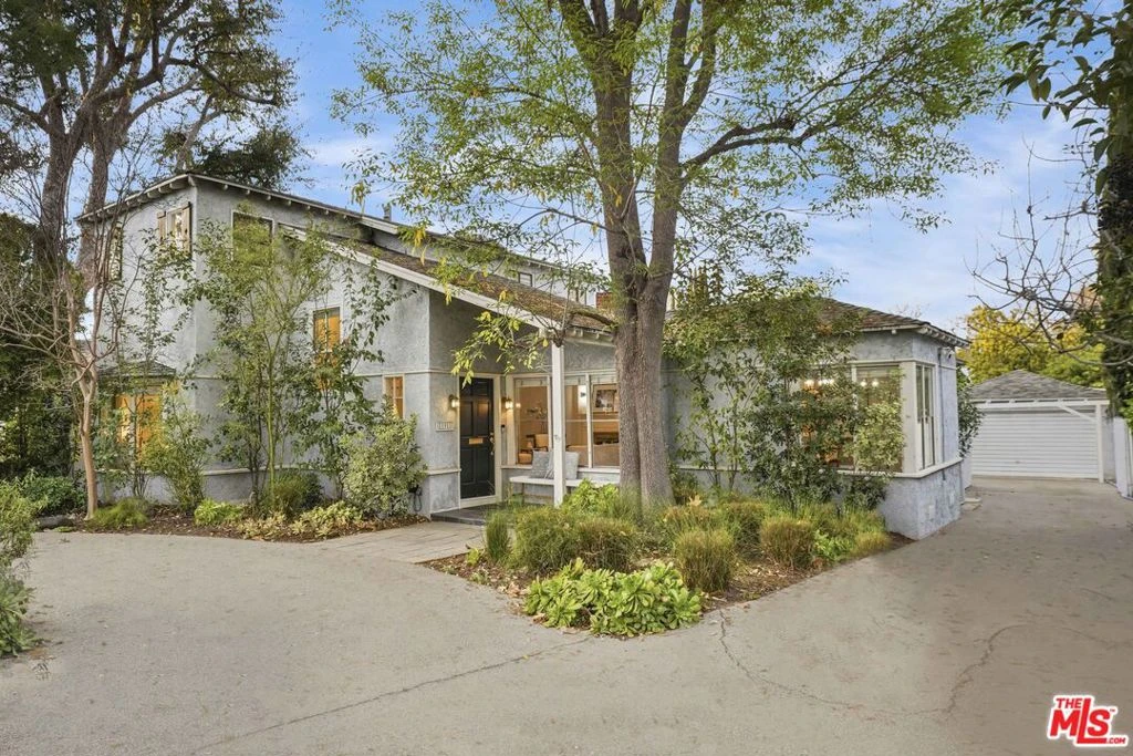 Style, form and function come together beautifully in this 1930s California Contemporary sited in the most sought after neighborhood in Valley Village: An idyllic, vibrant tree lined community and wonderful place to call home! With an expansive circular drive and a lush fusion of floral and greenery, the home's exterior offers wonderful curb appeal and bids a warm welcome. Inside, the light-filled flexible floorplan provides gracious transition from room to room with a unique symmetry of classic period details with the design and amenities ideally suited for today's contemporary lifestyle. Beautiful detailed moldings, warm refinished wood floors, dual fireplaces, brick, beadboard and wainscoting all contribute to a serene sense of home. The crisp bright kitchen features a convenient breakfast nook. The dining room lends itself ideally to formal and informal friend and family gatherings. Baths feature fine lighting, fixtures and finishes. From the vaulted, skylit family room and bonus room, glass atrium doors bring the outdoors in and give way to an idyllic, relaxing backyard oasis replete with stone terrace, fountain, pergola and expansive pool and spa. The ideal venue for the coveted California lifestyle of relaxed al fresco leisure. Four bedrooms with three baths round out the comfortable accommodations. Highlights include whole house fan, dual HVAC, recessed lights, speaker system, and detached, 2-car garage with bonus room! Located on a picturesque, tree lined street in the award winning Colfax Charter School District (ranked 9th best charter school in California!) and just moments from beloved Valley Village Park, NBC, CBS, Disney, Warner Bros. and Universal Studios, and the famed NoHo Arts District. Welcome!