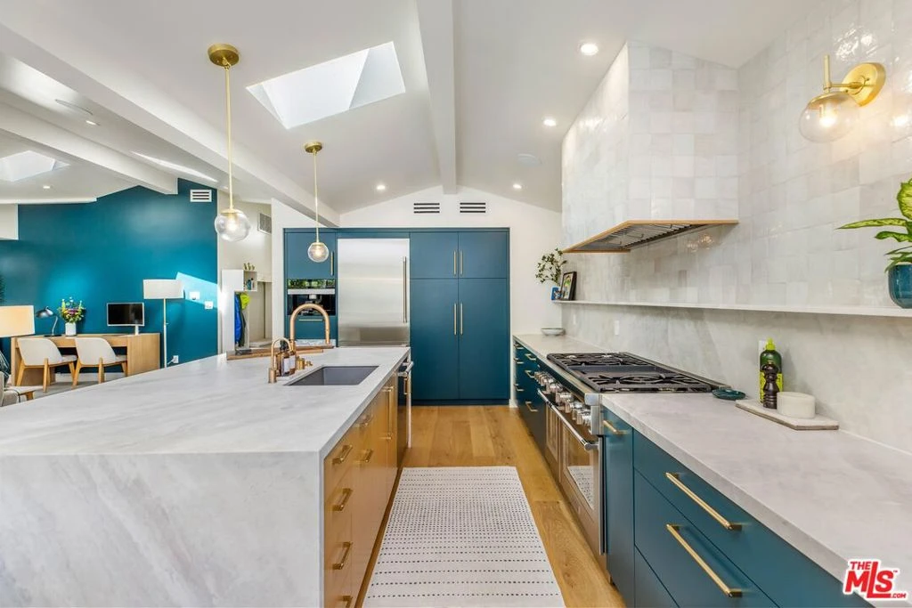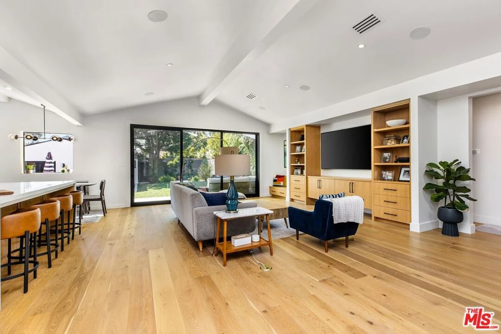Step into this meticulously remodeled home in Valley Village showcasing luxury, sophistication, and timeless character. Spanning 3BD/3.5BA plus a fully permitted ADU, every finish has been thoughtfully curated from rich Zia tile featured in each ensuite bath to integrated smart home features throughout. Upon entry, warm engineered wood floors, high ceilings, and striking accent walls create an inviting first impression. The stunning chef's kitchen is outfitted with a huge center island, Thermador appliances, a built-in Miele coffee system, dolomite countertops, and a sleek backsplash crafted from handcrafted Cle tile. The living room has custom built-ins and expansive Western sliding doors open to the backyard, creating the perfect indoor-outdoor lifestyle. A stylish powder room just off the kitchen is ideal for guests. Down the hall, the primary suite features soaring ceilings, a walk-in closet, and a luxurious ensuite bath complete with a spacious shower with bench, dual vanity, durable slate tile flooring, and private water closet. Each secondary bedroom offers sliding closet space and its own ensuite bath featuring custom carpentry vanities. Outside, the backyard is designed for year-round entertaining with a heated and filtered pool, a large private lawn, covered patio, and multiple lounge areas. The fully detached ADU includes a kitchenette with stainless steel appliances, waterproof LVP flooring, and a well-appointed bathroom with a step-in shower, ideal for guests, extended family, or rental income. Additionally behind the ADU you'll find a bonus room that's perfect for a home office, gym, or storage room. The home also includes a laundry room with side-by-side washer and dryer, surround sound both indoors and outdoors, a four-camera hardwired security system, and value-enhancing and money-saving solar energy system. Conveniently located near the award-winning Colfax Charter Elementary school, Valley Village Park, and some of the valley's best dining and shopping, this reimagined home offers elevated living with exceptional convenience.