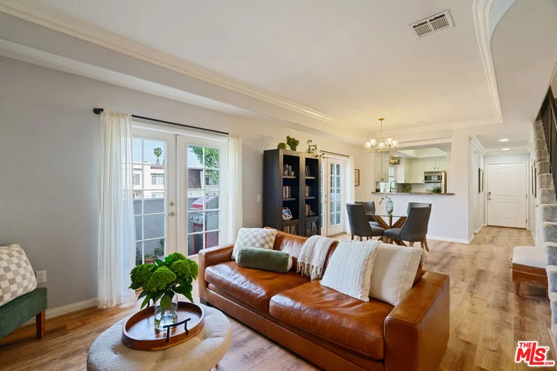 Located in a quiet courtyard setting in the heart of Valley Village, this three level townhome offers bright living spaces and a private rooftop deck with treetop views. Recently updated laminate wood flooring runs throughout the first two levels, creating a clean and cohesive feel across the main living areas.The main floor features an open living and dining space with a fireplace and French doors that bring in natural light. The kitchen includes granite countertops, stainless steel appliances, white cabinetry, a gas range, and a large window above the sink that fills the space with daylight. A kitchen bar provides a comfortable place to sit and gather while meals are being prepared. A powder room and pantry storage beneath the stairs add everyday convenience.Upstairs, the bedrooms offer comfortable layouts and natural light, with in unit laundry located on the same level. The primary bathroom features a remodeled shower with fiberglass enclosed sliding doors on rollers, along with granite counters and tile flooring.The private rooftop deck provides open sky and treetop views, creating a quiet outdoor space above the neighborhood.Additional highlights include a smart thermostat, guest parking, and two tandem assigned parking spaces. Conveniently located near Studio City, Ventura Boulevard, the NoHo Arts District, and major freeways.