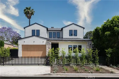 A one-of-a-kind architectural residence in prime Valley Village, adjacent to Studio City. Defined by soaring ceilings, clean lines, and a warm modern palette, the home unfolds with an effortless indoor-outdoor flow. Expansive walls of glass open the main living spaces directly to the backyard, creating a seamless extension of the interior. The residence offers 6 bedrooms and 6.5 bathrooms, including a primary suite with a spa-like bath, dual sinks, a soaking tub, and expansive walk-in closets. Additional features include a complete smart home system, Roman clay plaster finishes by Portola on the walls and ceilings, a spacious laundry and mudroom, a reading nook, a pantry, and thoughtfully designed living spaces throughout. At the center of the home, a beautifully designed kitchen anchors the space—featuring custom cabinetry, natural stone countertops with silver travertine, and an oversized island, all oriented toward the outdoors. A striking floating architectural staircase with smoked glass serves as a focal point, framed by floor-to-ceiling wood paneling and a dramatic picture window that draws in natural light, adding a sculptural element to the home’s design. Step outside to a privately landscaped backyard designed for both everyday living and entertaining. A pool and spa with a cascading waterfall anchor the space, complemented by a built-in BBQ and multiple areas to gather and dine. A fully detached guest house (ADU) with a metal roof sits at the rear of the property, offering flexibility for extended stays, a private workspace, or separate living quarters. A rare opportunity to own a newly built home that prioritizes design, scale, and livability in one of Valley Village’s most desirable pockets.