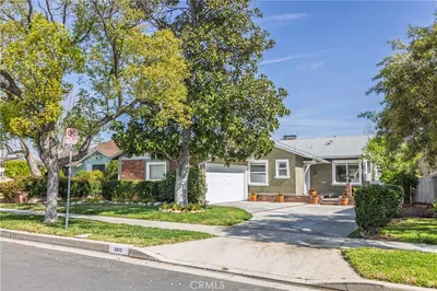 First Time Ever on the Market! Charming 3 Bedroom Pool Home with Timeless Appeal. Welcome to this stunning 3 bedroom, 2 bath pool home that exudes character and undeniable charm. Boasting incredible curb appeal, a stately magnolia tree, and a distinctive red ribbon driveway leading to an attached 2 car garage, this home makes a memorable first impression. A brick walkway and patio guide you to the inviting front door. Step inside to a bright and open living room, where original hardwood floors and large double pane windows fill the space with natural light. Exposed beams complement the brick fireplace, a unique feature that also doubles as a backyard BBQ. All bedrooms are generously sized, including a versatile convertible bedroom with wood paneling, a display ledge for art, and a full closet. The primary suite features his and hers closets and ample room to unwind. Bathrooms include a remodeled full bath with tub, a glass enclosed shower, and updated countertops, plus a convenient half bath for guests near the entry. LED lighting throughout adds a modern touch. The kitchen, lovingly maintained, showcases warm knotty pine finishes, abundant counter space, built in display shelves, and a cozy breakfast nook perfect for a bench seat. Enjoy seamless indoor outdoor living with doors from both the dining area and kitchen that open to your private backyard retreat. Relax by the sparkling pool and jacuzzi, surrounded by fruit trees and plenty of space for lounging, storage, or a lush vegetable garden. Upgrades include plumbing, sewer line, newer HVAC system, dual pane windows, newer roof, pool plaster & pump, and fresh paint inside and out. This home has truly been cared for by the original owners and is move in ready. A rare gem that has never before been on the market, this property combines timeless style, comfort, and outdoor enjoyment. Experience the best of North Hollywood/Valley Village living in this exceptional residence. It is conveniently located near major freeways, a new Target, and the newly built NoHo West Development, which includes Trader Joe’s, Nordstrom Rack, LA Fitness, Ulta, Urbane, California Fish Grill, and more. Don’t miss your chance to make it your own!