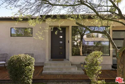 Reimagined, modern, and thoughtfully upgraded, this turnkey home blends elevated design with smart functionality. A dramatic open-concept layout brings the kitchen, dining, and family room together under vaulted ceilings with exposed beams and a stunning 16-foot sliding glass door that opens seamlessly to the outdoor living spaces perfect for entertaining or relaxed everyday living. The spacious primary suite is a true retreat, featuring soaring vaulted ceilings, a walk-in closet, private outdoor access, and a sleek, spa-inspired bathroom with floating dual vanities and a curb-less walk-in shower with infinity drain. The former kitchen has been repurposed into a practical laundry and mudroom with direct access to the backyard and garage ideal for busy lifestyles. Recent improvements enhance both comfort and efficiency, including two owned Tesla Power walls, Tesla solar panels (currently on a rental system with transfer or buyout options available), a tankless water heater, security camera system, and seamless gutters bringing modern peace of mind and long-term utility savings. Outdoors, the property shines as a private sanctuary. Drought-tolerant native landscaping creates a serene, low-maintenance environment, complemented by a modern redwood like privacy fence and custom steel gates. The backyard offers multiple decks, mature fruit trees, bamboo screening, a gas fire pit, and soothing water features perfect for quiet evenings or hosting friends. A detached modern studio/office provides an ideal work-from-home, creative, or fitness space. A newly expanded two-car garage with a striking glass and metal door completes the home's contemporary appeal. A rare blend of design, sustainability, and lifestyle this is Southern California living at its best.