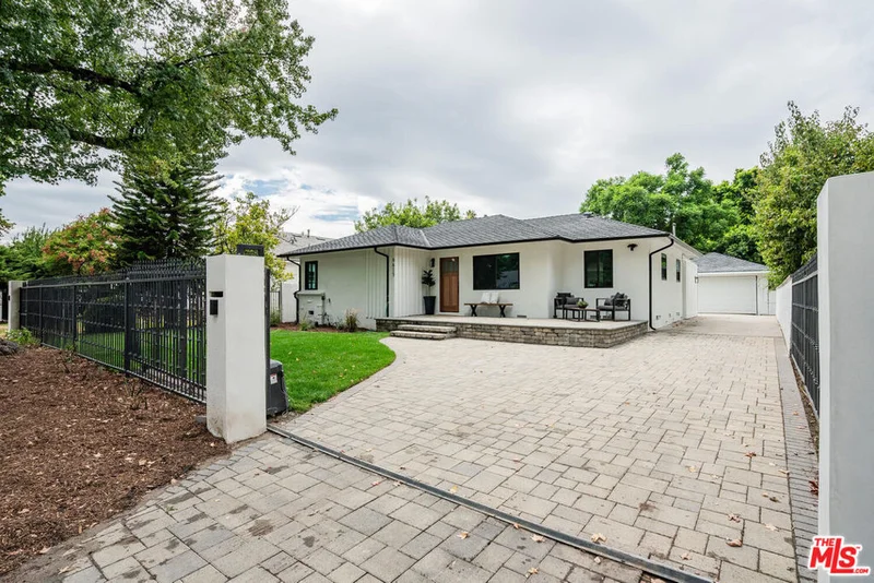This stunning remodel is located in the much sought after Midvale Estates. Nestled behind elegant wrought iron gates, the front porch sets the tone for its inviting interior. Upon entry, you'll be captivated by the sunlit ambiance, and rich wood flooring throughout. The chef's kitchen is a true centerpiece, boasting a large stone-accented center island with a built-in sitting area, brand-new cabinetry, and top-of-the-line stainless steel appliances. It seamlessly flows into a step-down family room, complemented by a guest bathroom, pantry, and a dedicated laundry room. The luxurious primary suite offers a spa-inspired bathroom and a spacious walk-in closet. Additional highlights include a generously sized secondary bedroom, plus a versatile den/office with a closet, and another beautifully appointed full bathroom. Step outside to an expansive backyard oasis, ideal for al fresco dining and entertaining. Enjoy a lush lawn, fruit trees, a cozy firepit, a charming chicken coop, and ample space to add a pool. Conveniently located near popular dining spots, shopping centers, Lake Balboa, three golf courses, scenic bike paths, and public transportation, this exceptional property is truly a must-see.