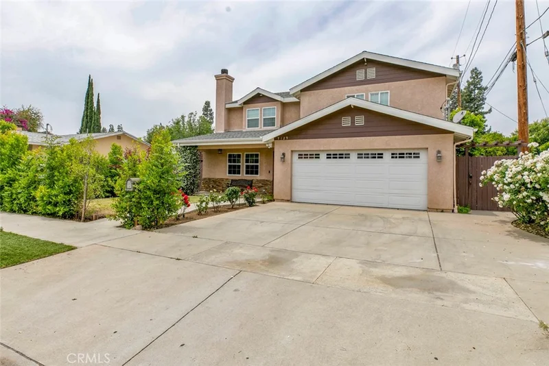 This is a Short Sale. This lovely 2,525-square-foot home, constructed in 2007 in Van Nuys, offers 4 bedrooms and 3 bathrooms. The expansive primary suite includes an 18'x18' bedroom with two walk-in closets, dual sinks, a separate shower, and a soaking tub. A versatile downstairs bedroom is ideal for guests or a home office. The residence is equipped with modern conveniences like a dedicated laundry room, a two-car garage, and smart home features such as customized lighting, a smart lock, thermostat, and security cameras. Entertainment is enhanced by built-in surround sound speakers and a gas fireplace. Outdoors, the property boasts drought-tolerant ficus trees, a vertical garden, a strawberry patch, and a raised garden bed with an automatic watering system. Designed for privacy, this home is perfect for both indoor and outdoor entertaining. Make sure to come see.