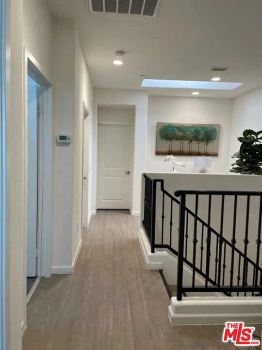 Beautifully maintained home in a highly desirable community, offering a bright and open floor plan with spacious living and dining areas filled with natural light. The modern kitchen features white cabinetry, stainless steel appliances, and a stylish mosaic tile backsplash, opening to a private patio perfect for outdoor dining or relaxation. The inviting primary suite includes dual vanities and generous closet space, complemented by two additional well-sized bedrooms ideal for guests or a home office. Additional highlights include an upstairs laundry area, wood-style flooring throughout, recessed lighting, dual-pane windows, and a light-filled upper landing with a skylight. A direct-access two-car garage adds convenience. Ideally located near shopping, dining, parks, schools, and major freeways, this move-in-ready residence blends comfort, style, and convenience in one of Van Nuys' most appealing communities.