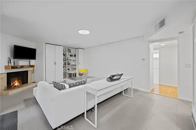 This spacious and beautifully updated top-floor unit offers 2 generous bedrooms and 2 full bathrooms. The updated and modern kitchen features stylish Shaker cabinets, Quartz countertops, a stainless steel sink, recessed lighting, and stainless steel appliances. It opens seamlessly into the dining area, highlighted by modern laminate flooring. The inviting living room boasts a gas fireplace, smooth ceilings, and recessed lighting. The primary bedroom offers soaring ceilings, mirrored wardrobe doors, and a private balcony. Newly installed HVAC & water heater in 2024. Additional features include an in-unit laundry room, central location at the rear of a charming garden-style complex, gated subterranean 2 car tandem parking, and access to a community pool. Conveniently located near the 405 freeway, with shopping, dining, and entertainment just minutes away—this home is perfect as a primary residence or an excellent investment opportunity.
