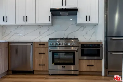 Fully remodeled 2BD/2.5BA townhome located on iconic Abbot Kinney Boulevard, just moments from Venice Beach and the Venice Canals. This turnkey residence features a bright open floor plan with brand-new luxury vinyl flooring, designer tile, recessed lighting, and a fireplace. Sliding doors open to a private patio. Completely renovated kitchen with new custom cabinetry, quartz countertops, built-in wine refrigerator, and premium Forno appliances. Main level includes a powder room for added convenience. Upstairs offers two spacious ensuite bedrooms with updated bathrooms and ample closet space. Additional upgrades include in-unit LG washer/dryer, central HVAC, and modern fixtures throughout. Gated-access building with two secured parking spaces. Prime location near shopping, dining, cafes, and all that Venice has to offer.