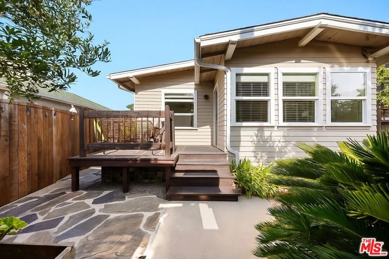 Tucked away on a quiet tree-lined street two blocks from Abbot Kinney, this property combines a Craftsman bungalow with a detached duplex. As you enter, you're greeted by lush landscaping that surrounds the grounds, one of the unique characteristics of this setting. The front bungalow includes a new roof, private deck, open layout, wood-beam details, and a built-in window seat. Each of the three residences offers two bedrooms, one bath, full-size laundry, and a private outdoor area. Shared interior elements include exposed beams, knotty pine flooring, and natural light. The rear up-and-down duplex includes a new roof and carries the same interior features. Both duplex residences offer private outdoor areas; the lower unit's primary bedroom features double doors which open directly to its outdoor space, and the upper unit includes vaulted ceilings and skylights that create an open, airy feel. Gated parking for four cars sits at the rear with electric gate access. Ideal for an owner-user or investor with the option to live in one residence while leasing the others. Located steps from Abbot Kinney, the property offers walkability to dining, boutiques, and Venice Beach.