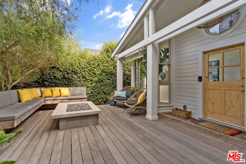 Ideal Venice Location! This 3-bedroom, 3-bath home offered furnished (optional) includes a versatile bonus ADU. Full of unique and unexpected details, this property is designed to delight and inspire. Enter through the gated front yard to a spacious deck perfect for entertaining, complete with a water fountain, fire pit, and outdoor heater. The first floor features a cozy living room with fireplace, a light-filled dining area, a full guest bedroom and bathroom, plus a mudroom and an additional den ideal for a home office or lounge. The gourmet kitchen is equipped with stainless steel Miele appliances and generous cabinetry. Step out to the private back patio, outfitted with a built-in barbecue, refrigerator, and sink perfect for al fresco dining and gatherings. The detached ADU (with A/C) offers flexible use as a home gym, office, or guest suite. Additional features include one gated parking space. Located just moments from Erewhon, Abbot Kinney, Rose Avenue, Whole Foods, and some of Venice's best shopping and dining.