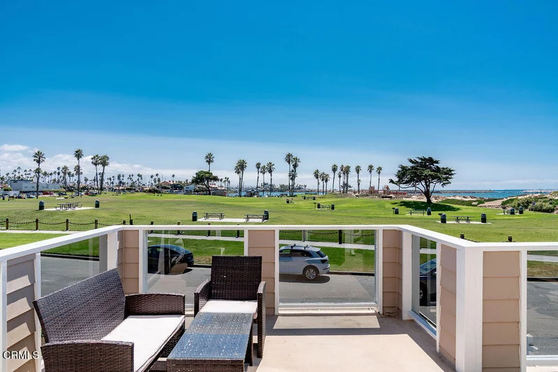 Sited on one of Pierpont's most coveted streets, Greenock Lane, this expansive coastal retreat captures endless whitewater views stretching across Ventura Harbor, the Channel Islands, and Marina Park. With over 3,800 square feet of living space, five bedrooms, and four bathrooms, the residence blends scale, flexibility, and quintessential Southern California beach living.The oversized entryway opens to a versatile first level featuring two spacious bedrooms, each with direct access to the backyard, along with a full bathroom, a comfortable den, a laundry room, and a two-car garage.Upstairs, the second floor unfolds into the heart of the home. Two additional bedrooms with private balcony access and two bathrooms share the level with an open-concept kitchen and dining area designed for both casual meals and entertaining. French doors in the family room invite you onto a sunlit balcony, while a separate living room with a fireplace provides a cozy retreat. From nearly every vantage point, sweeping ocean and island views create an ever-changing canvas of sea and sky.Crowning the residence, the third floor is devoted entirely to the primary suite, which features a fireplace, a large bathroom with soaking tub, separate shower, and walk-in closet, as well as a private balcony overlooking the Pacific.Set on an oversized, nearly 4,800 square foot lot, larger than most in Pierpont, the property offers ample outdoor space for gatherings with family and friends. With no neighbors directly across the lane and only steps to the sand, this rare offering is equal parts privacy, scale, and coastal living.