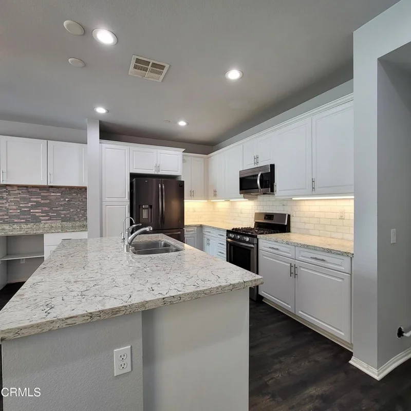 Built in 2017, this home offers nearly 1,800 sq. ft. of living space featuring three bedrooms and 2.5 baths. The second floor includes all bedrooms and a conveniently located laundry room.The main level features wood laminate flooring, plantation shutters, and a sliding door leading to a private patio. The open-concept kitchen is equipped with quartz countertops, a marble backsplash, a large island, stainless steel appliances, and a built-in desk area.The second-floor master suite features high ceilings, recessed lighting, a large walk-in closet, and a master bathroom with a soaking tub, separate shower, and dual vanities. Additional amenities include an attached 2-car garage, a tankless water heater, and tons of storage space.The property is ideally situated with easy access to the 101 and 126 freeways, and just minutes away from local shopping, dining, and Ventura beaches.