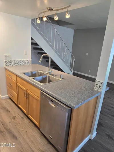 Experience the most sought-after 2-bedroom floor plan in the heart of Ventura. This beautifully updated condo features a seamless open-concept flow between the living room, dining area, and a modern kitchen equipped with an electric range, refrigerator dishwasher. Updated cabinetry, a built-in microwave, and a generous pantry. Vinyl wood laminate throughout with newer carpet in the bedrooms. Fresh Finishes: Newer paint, updated lighting, and a remodeled bathroom with a newer vanity and walk-in shower. Enjoy community perks including several swimming pools, a shared ENCLOSED garage, including additional private secured storage. Private laundry and driveway parking. Two popular parks nearby, Located close to the Ventura County Government Center, premium shopping, dining, and the beach.