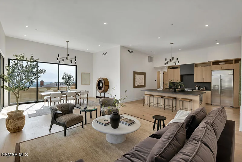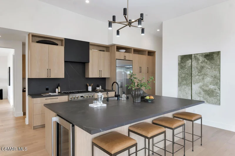 Rare opportunity!!! - to own a newly completed, one-of-a-kind ocean view modern masterpiece nestled in the sought-after Ventura foothills. This stunning 3-bedroom, 2-bathroom home offers 2,025 sq ft of contemporary architecture, elevated finishes and breathtaking coastal vistas. Striking modern curb appeal sets the tone as you step inside to vaulted ceilings, engineered hardwood floors, recessed lighting and dual pane windows that flood the home with natural light. The living room is a true showpiece, highlighted by a dramatic floor-to-ceiling Dekton surround gas fireplace and expansive double sliders that frame the spectacular ocean view and create seamless indoor-outdoor living. The designer kitchen is both stylish and functional, featuring sleek Dekton counters, GE Monogram stainless-steel appliances as well as a generous island with wine refrigerator, sink and seating. Enjoy the primary suite boasting a large slider that opens to ocean-facing views, walk-in closet and a spa-inspired ensuite bath with dual floating vanities topped in Dekton. Two spacious secondary bedrooms, beautifully appointed full guest bath, dedicated laundry room with utility sink and direct access to the two-car garage complete the interior. Outside, the backyard is equipped with an automatic drip system and drought tolerant native landscape - an ideal outdoor retreat while soaking in the foothill/coastal scenery. Additional amenities include owned solar, EV hook ups and tankless water heater. Located close to shopping, dining, schools, hiking and biking trails - this architectural gem offers the perfect blend of modern luxury and Ventura lifestyle. Welcome home.