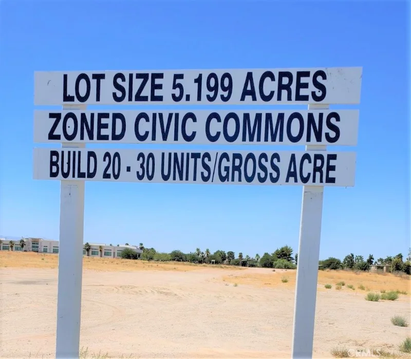 BEST PRICE ON THE MARKET – PRIME DEVELOPMENT SITE. Exceptional 5.199-acre vacant land in the heart of Victorville (Approx. Lot Dimensions: 331’ x 680’) with tremendous multi-family development potential – possibly 100+ units! Located within the Victorville Civic Center Specific Plan, this site is zoned Civic Commons, which encourages a vibrant live–work–play community. The zoning allows high-density residential (20–30 units per gross acre), making it ideal for apartments, mixed-use, or other compatible developments. Key Highlights: Street-to-street lot between Mc Art Road and Borega Road. Surrounded by 7+ large apartment communities in the same block. Self-storage facility nearby for added convenience. Directly across from Victorville City Public Works offices. Close to major employers, shopping centers, schools, and the I-15 Freeway for easy commuter access. This strategic location offers a rare combination of density, amenities, and accessibility, making it a standout opportunity for developers. Buyer to verify all information, zoning, and development potential with the City of Victorville and relevant agencies.