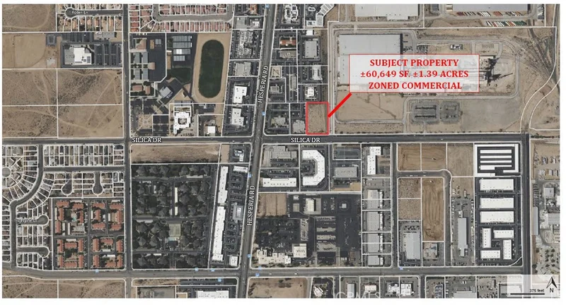 ±1.39 acre vacant land building pad of commercial zoning which is well poised for immediate development within a professional / medical campus development area. This parcel represents the last remaining vacant land parcel within the development. Perched high above Silica Dr with an increased elevation that will provide its future building unmatched identity and visibility. Just over 400 feet east of the signalized intersection at Hesperia Rd & Silica Dr. Very much the center of the High Desert Region, the immediate surrounding vicinity has transformed itself into a hub for medical office and service providers. Previously entitled for a ±14,377sqft medical / professional office building.