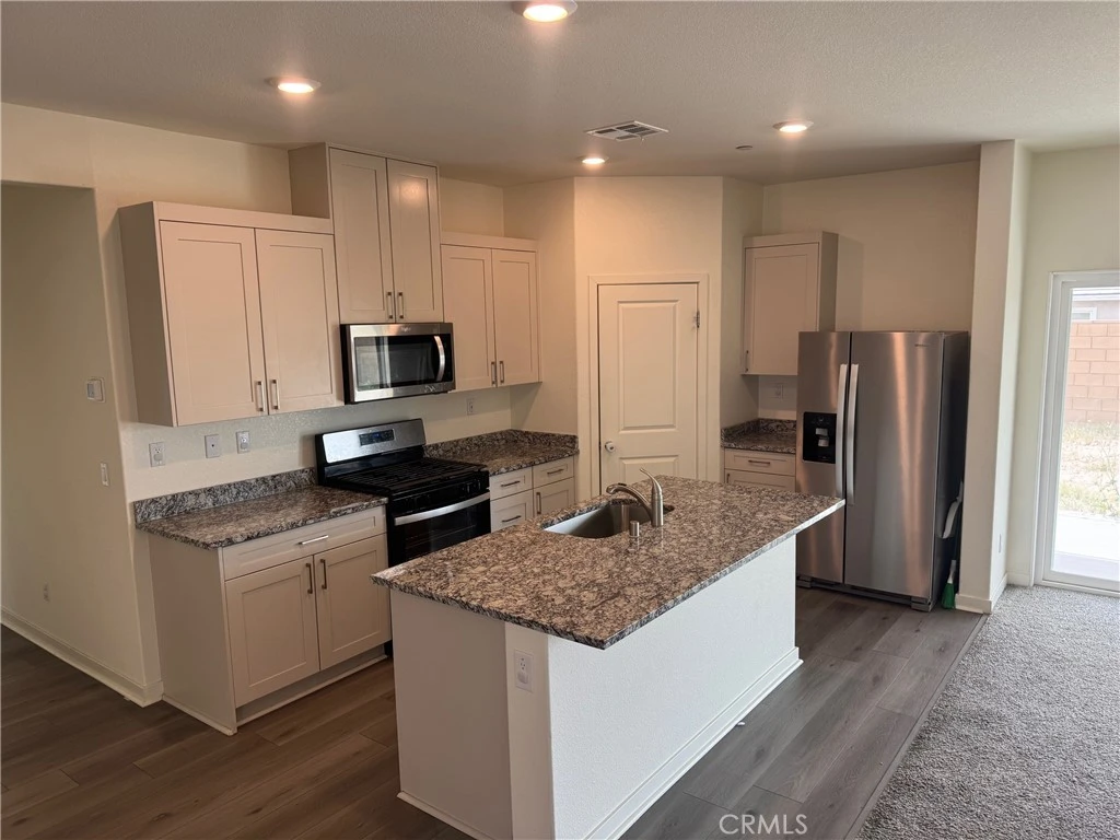 Make a lasting first impression with this stunning single-story home in a highly desirable Victorville neighborhood! Located on a quiet cul-de-sac, this 3-bedroom, 2-bath home boasts high ceilings throughout, an open-concept layout, and a spacious family-friendly design. The chef’s kitchen features beautiful quartz countertops, a huge island with a stainless steel sink, Whirlpool stainless steel appliances, and luxury plank vinyl hardwood floors in the kitchen, dining, and bathrooms. The primary suite offers a private retreat with an en-suite bath, large shower, and walk-in closet. Enjoy outdoor living under the covered back patio with block walls in the backyard. Additional upgrades include granite countertops, energy-efficient appliances, a Wi-Fi-enabled garage door opener, solar panels, and an ADT security system with exterior cameras. Perfect blend of comfort, style, and modern convenience!