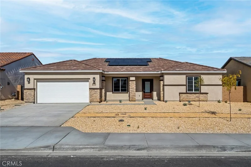 Hermosa Make first impressions count with this beautiful new construction home in Victorville. This single-story, three-bedroom, two-bath home is bursting with character. This home offers an incredible, open layout, creating a warm, inviting environment. The kitchen is open to the family room, creating the ideal entertainment area. The master suite is the perfect place to retreat to, with an en-suite bathroom with a large shower and a walk-in closet. All upgrades come included in this home such as granite countertops, energy-efficient kitchen appliances, a Wi-Fi-enabled garage door opener, solar panels and more. CAL DRE #02064225, LGI Realty - California, Inc.
