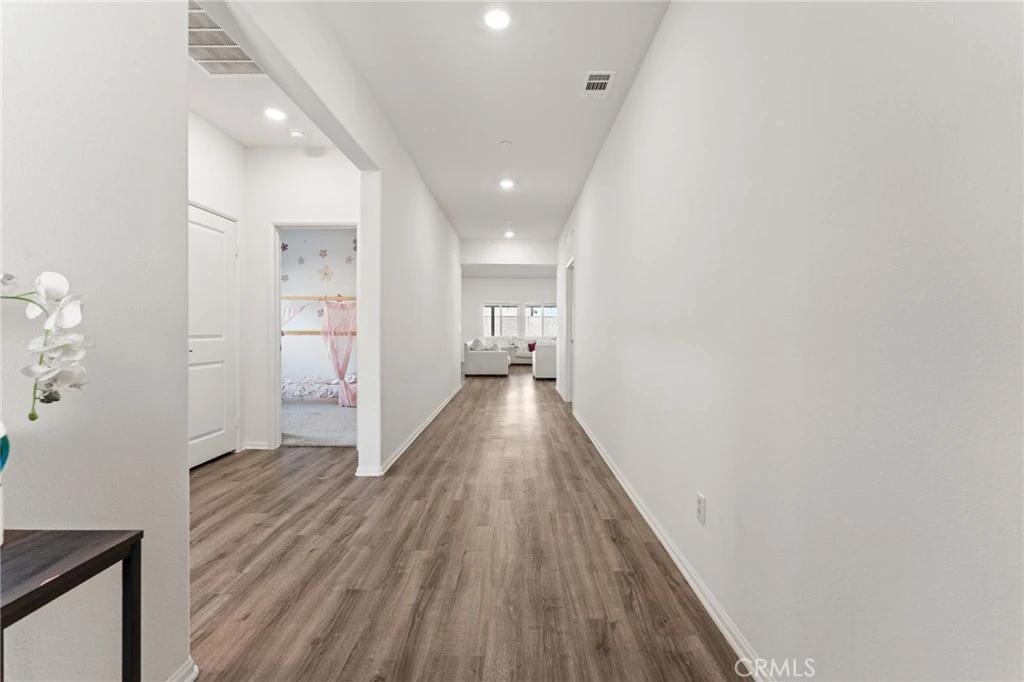 Built in 2023, this 3 bedroom, 2 bath home offers approximately 1,600 sq ft of living space in Victorville. The floor plan features a long entry leading to an open living area. The kitchen includes granite countertops, center island with seating, and stainless steel appliances. PAID OFF solar, and $15,000 upgraded patio and backyard. Bedrooms are spacious, including a primary suite. The property offers an oversized backyard with potential for outdoor use or future improvements. Additional features include smart home technology, LED recessed lighting, and a tankless water heater.