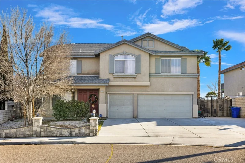 Step into refined comfort with this expansive two-story residence designed for both elegance and everyday living. The beautifully designed kitchen offers extensive cabinetry, tiled surfaces, and a spacious center island that serves as the heart of the home. It opens effortlessly to the dining area and provides direct access to the backyard, creating a seamless flow ideal for entertaining. Outdoors, enjoy your own private retreat featuring a sparkling pool, perfect for relaxing afternoons and unforgettable gatherings. The thoughtfully designed floor plan includes a convenient downstairs guest powder room, multiple living areas, and modern appliances that enhance both style and functionality. With generous interior space and an inviting layout, this home offers the perfect balance of sophistication and comfort. Situated in a desirable Victorville neighborhood close to schools, shopping, and commuter routes, this property delivers lifestyle, space, and exceptional value. Buyer to verify all information.