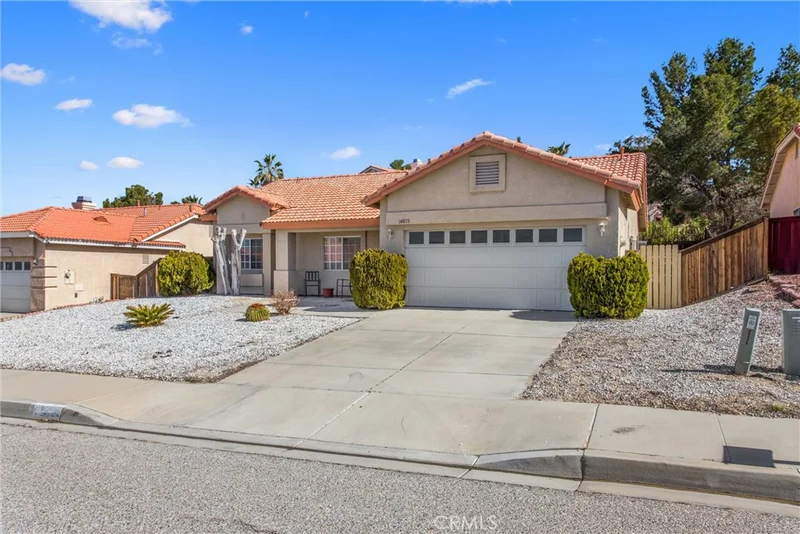 Welcome to 14828 Stone Age Lane, a beautifully maintained single-story retreat located in a quiet, established Victorville neighborhood. This 3-bedroom, 2-bathroom home offers 1,174 sq. ft. of comfortable living space designed for both relaxation and entertaining. Step inside to find an inviting open floor plan featuring a cozy fireplace in the family room—perfect for chilly high-desert evenings. The kitchen comes fully equipped with a gas range, microwave, and dishwasher, making meal prep a breeze. The primary suite and guest bedrooms are all conveniently located on the main level, featuring a mix of durable tile and plush carpet. Outside, enjoy low-maintenance desert landscaping and a private deck where you can soak in the stunning mountain views. With a 2-car garage, central AC, and no HOA fees, this home is the perfect blend of convenience and charm. Don't miss your chance to own this turnkey beauty!