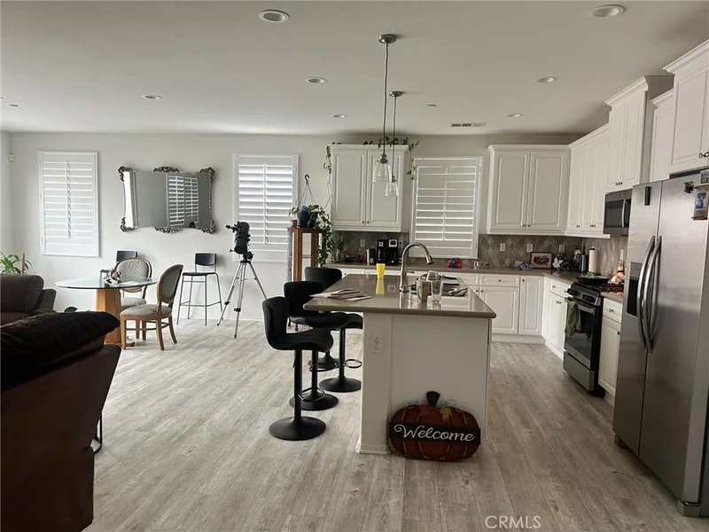 Welcome to your dream home! This stunning single-story gem, built in 2020, is a perfect blend of modern design and comfortable living. From the moment you step onto the charming covered porch entry, you’ll feel right at home. The beautifully designed kitchen offers both style and functionality, featuring high-end stainless steel appliances, sleek white lacquer-finish cabinets, and sparkling quartz countertops and a spacious island perfect for meal prep or casual dining. A double sliding door seamlessly connects the kitchen to the patio, making indoor-outdoor living a breeze. Natural light floods the dining room, creating a bright and welcoming atmosphere. Every window is dressed with stylish shutter coverings, adding a touch of sophistication. The backyard offers the perfect space for relaxation, entertainment, or play. The luxurious master suite is your personal retreat, complete with a private bath, dual sinks, and an oversized walk-in closet. With three bedrooms, a second full bathroom, and a versatile flex room that can serve as an office, guest room, or even a fourth bedroom, this home is designed to fit your lifestyle. Nestled in a peaceful rural community, this property offers the perfect combination of tranquility and modern convenience. Whether you're hosting gatherings, working from home, or simply enjoying quiet evenings, this home has it all.