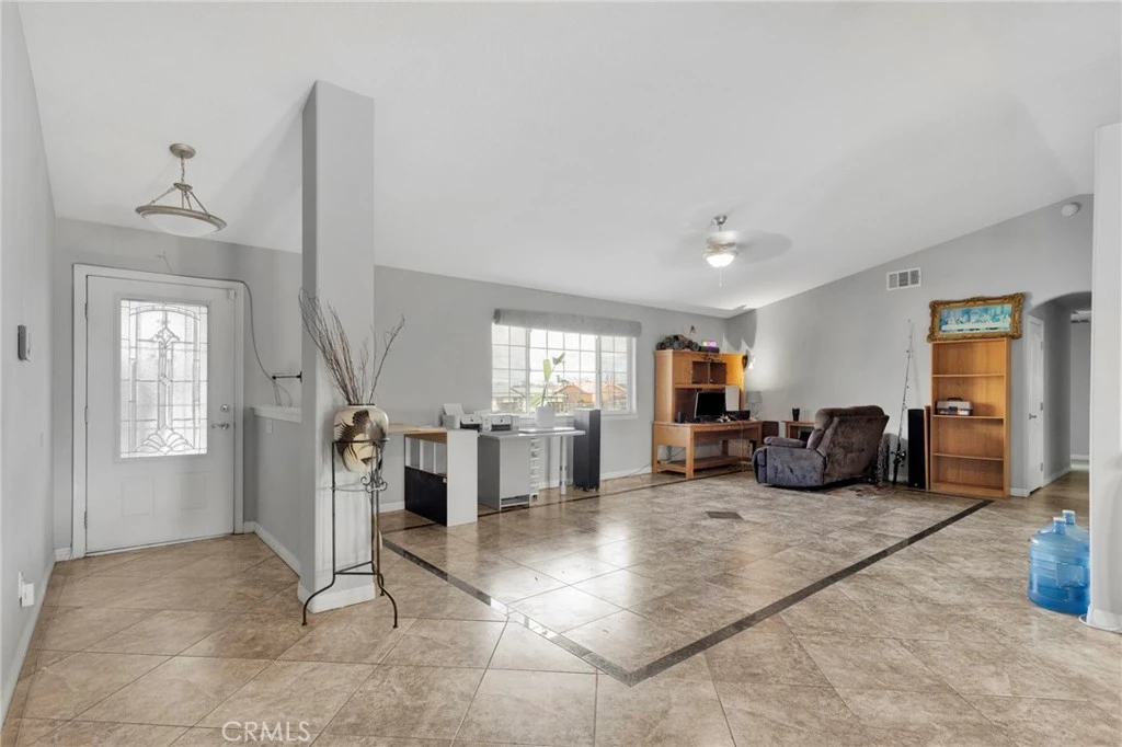 Welcome to this beautifully crafted custom home! Thoughtfully designed with vaulted ceilings and custom tile flooring throughout. A durable tile roof complements the home's classic appeal, while elegant French doors lead to a spacious covered patio, perfect for relaxing or entertaining. Situated on a full acre! This property features a fully fenced front and backyard, offering privacy and plenty of room to roam. Inside, the open-concept layout seamlessly connects the kitchen, dining, and living areas. The kitchen boasts granite countertops, stainless steel appliances, a convenient breakfast bar, and overlooks the inviting family room anchored by a granite gas fireplace. The primary suite offers comfort and functionality with his-and-hers closets and an en-suite bathroom featuring a double vanity and granite countertops. Both bathrooms and the indoor laundry room have matching granite finishes for a cohesive, upscale feel. Additional highlights to the backyard include RV access, shy of under half an acre, a shed, high-quality water filtration system for exceptional drinking water. Centrally located near the 15 freeway, schools, shopping, and more! This home offers the perfect blend of convenience and comfort.