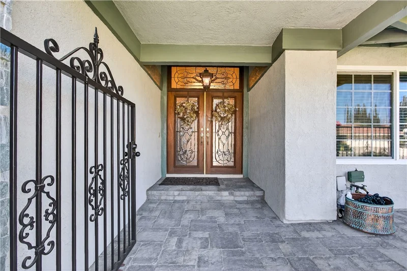 This immaculately finished Villa Park estate sets the standard for sophistication, creativity, and timeless appeal. Offering 3,600 sq ft of living space on a generous 12,000 sq ft lot, this 4-bedroom, 3-bath stunner delivers luxury at every turn. The experience begins at the curb: lush, manicured softscape pairs with crisp architectural lines, stacked stone accents, carriage-style garage doors, and a custom wrought-iron privacy fence, evoking instant exclusivity. Step through high-end custom lead-glass double doors onto finely honed marble floors. A striking custom staircase with decorative wrought iron is coupled with a showstopping Schonbek chandelier. The formal living room features soaring ceilings, a dramatic two-story precast fireplace surround, an impressive chandelier, and abundant windows that blend grandeur with warmth and comfort. The former dining room now serves as a versatile flex space—ideal for entertaining guests or enjoying a quiet movie night. The kitchen is a culinary masterpiece: French-inspired cabinets with glass-inlaid uppers and solid brass hardware frame a La Cornue dual-fuel oven, range, and vent hood. A massive center island with stunning quartzite counters offers exceptional function and beauty, while a spacious walk-in pantry completes this chef’s dream. The open great-room design unites the family room and kitchen behind an impressive 12-foot window wall—open it to embrace quintessential luxury California indoor-outdoor living. The highly coveted main-level primary suite impresses with elegant wood floors, custom base and crown molding, and a private spa-like bath featuring a marble-topped vanity, deep soaking tub, and floor-to-ceiling porcelain wall finishes that feel like a five-star resort every morning. Upstairs awaits a bright, open bonus room with stain-grade wainscoting, cathedral-style ceilings, a massive TV, plus a separate bedroom and full bath. The backyard is an entertainer’s paradise: sparkling pool and spa, Versailles-pattern pavers, built-in firepit seating, and an elegant patio cover promise endless summer evenings and relaxed family moments. Additional highlights include a three-tiered fountain, formal finished office, three Schonbek chandeliers, Lutron shades, newer AC, and much more.