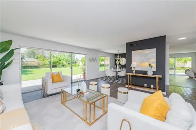 This distinguished single-story residence at 9531 Lemon Street epitomizes Villa Park living at its finest. Situated in the prestigious northeast quadrant on an expansive 26,095-square-foot parcel, the property presents exceptional opportunities for enhancement, whether one envisions a sports court or an accessory dwelling unit. The thoughtfully designed floor plan encompasses three bedrooms and a dedicated office—readily convertible to a fourth bedroom—all on a single level. Architectural details include a brick-capped perimeter wall, double-door entry with decorative glazing, and an abundance of natural light throughout the interconnected living and dining spaces. The well-appointed kitchen features professional-grade appliances and seamless indoor-outdoor connectivity. The primary suite provides a private sanctuary with direct patio access, generous walk-in closet, and luxuriously appointed en-suite bath complete with soaking tub and rain shower. The meticulously maintained grounds showcase a resort-style pool and spa within secure fencing, fruit orchard complemented by mature landscaping and substantial undeveloped space. A three-car garage with electric door openers completes this exceptional offering in one of Orange County's most coveted communities.