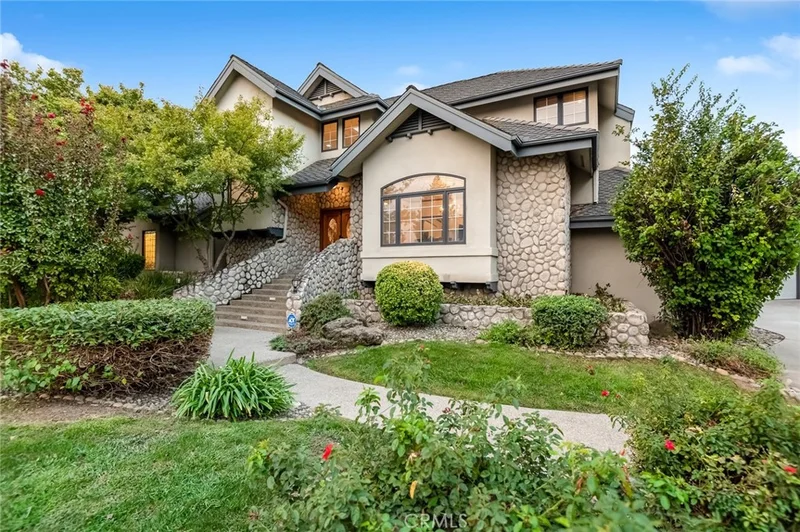 This stunning custom home is truly in a league of its own. From the striking river rock façade to the wood-cased windows, plethora of built-ins, and artful layout, every inch of this residence reflects quality craftsmanship. Enter on hardwood floors to an inviting formal dining room complete with a cozy window seat and built-in buffet—perfect for intimate gatherings or holiday dinners. The heart of the home is the impressive great room, featuring soaring ceilings, a marble-flanked fireplace and wood mantle. Adjoining this is a dream kitchen with large island topped with a dramatic copper hood, housing a gas cooktop and indoor grill. Roomy wood cabinetry, an appliance garage, prep sink, built-in kitchen desk, and pebble-tech flooring add both charm and practicality. A built-in banquette invites relaxed meals or a front-row seat to all the action. Beyond the kitchen, a multi-functional family room/den serves as the informal entry from the garage or side entrance. The spacious laundry room includes a sink, built-in desk, ironing board, and even a laundry chute from the upstairs bathroom—keeping things tidy has never been easier. A half bath with fun chalkboard walls and a generous walk-in pantry are conveniently nearby. The main-level primary suite features a sitting area with floor-to-ceiling bookshelves, a travertine-faced fireplace, coved ceiling, dual walk-in closets, granite-topped vanities, a soaking tub, and walk-in shower. Upstairs, a balcony overlooks the main living areas and connects a private bedroom with half bath on one side, and two additional bedrooms with a shared full bath on the other—ideal for family, guests, or home office. And yes, there's even a basement! A stairway leads down to additional living space and a temperature-controlled wine room. Step outside to enjoy multiple patio spaces, a sparkling pool, an above-ground spa, and lush mature landscaping. The 3-car garage and ample driveway parking provide plenty of space for guests