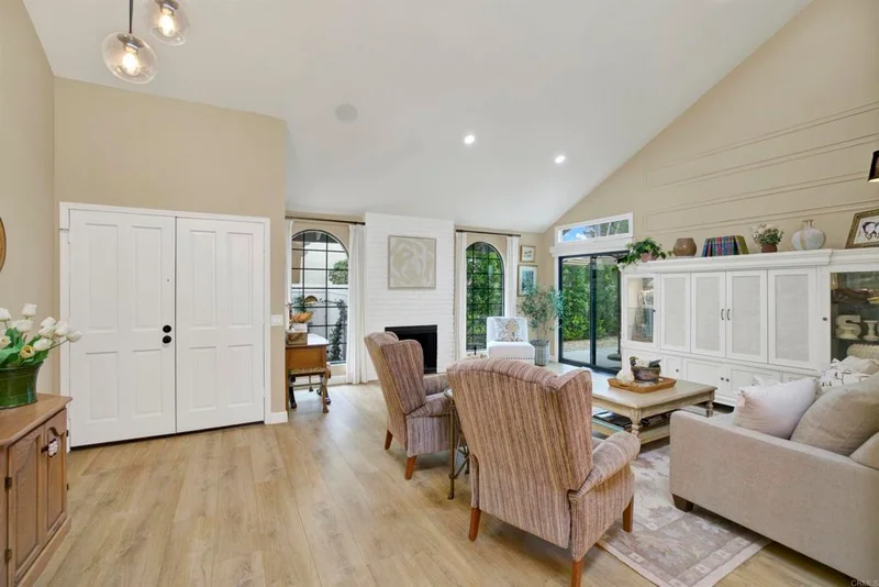 Beautifully redone older 1984 home to a new contemporary home and look. Home is ADA Compliant but not overtly presented. Seller will be removing some ADA features upon close of escrow. Newly reconfigured kitchen with an extra large stainless steel sink, a walk in pantry, and high end appliances. All new contemporary windows (except over kitchen sink) plus tumbled 3x3 inch custom back splash tiles, personally selected Quartz counters in kitchen and bathrooms, newly retiled stall shower in guest bath and easy roll in retiled master bathroom shower and bathtub area. This home is acoustically optimized with surround sound. There is a new back patio and an extended patio in front with widened driveway. All new landscaping. This home shows so well, really top of the line. This home is beautifully curated with refined sophisticated taste. An excellent floor plan.