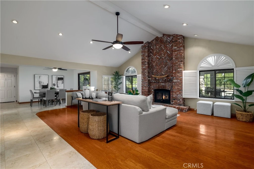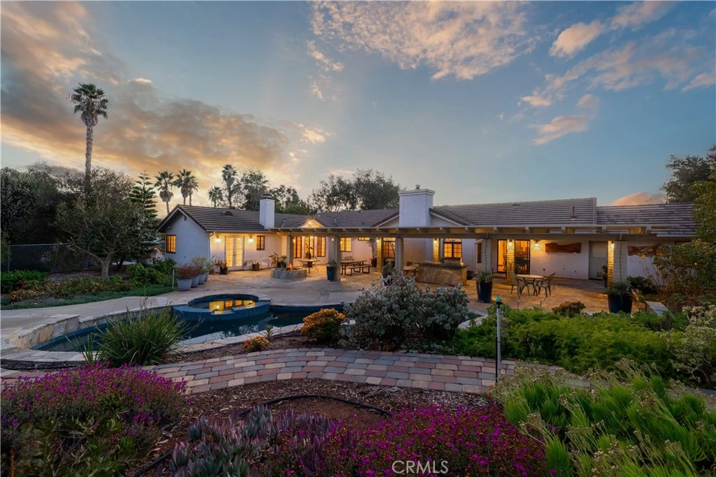 Welcome to this charming 4 Bedroom, 3.5 Bath, single-story home in the heart of Vista, offering a perfect blend of charm, privacy, and modern comfort. The inviting front entrance features a custom paver walkway surrounded by lush landscaping. Step inside to a bright and inviting interior, where expansive windows fill the home with natural light. The spacious living room features a striking brick fireplace, creating a cozy focal point. Designed for both style and functionality, the chef’s kitchen boasts rich custom cabinetry, sleek granite countertops, and premium stainless steel appliances, including a built-in Sub-Zero refrigerator and double oven. The elegant stone backsplash complements the warm wood tones, enhancing the luxurious ambiance. The spacious primary suite offers a tranquil retreat, complete with a fireplace and oversized windows. The spa-like primary bath features a jetted tub and a separate shower, providing ultimate relaxation. Step outside into your private backyard oasis. A sparkling pool and spa take center stage, accompanied by an expansive covered patio and BBQ area. Surrounded by mature landscaping and a variety of mature fruit-bearing trees, this serene outdoor haven is ideal for hosting gatherings or simply unwinding in nature. Experience the best of Southern California living with this picturesque home, spacious interior, and breathtaking outdoor spaces. Don’t miss the chance to make this Vista gem your own!