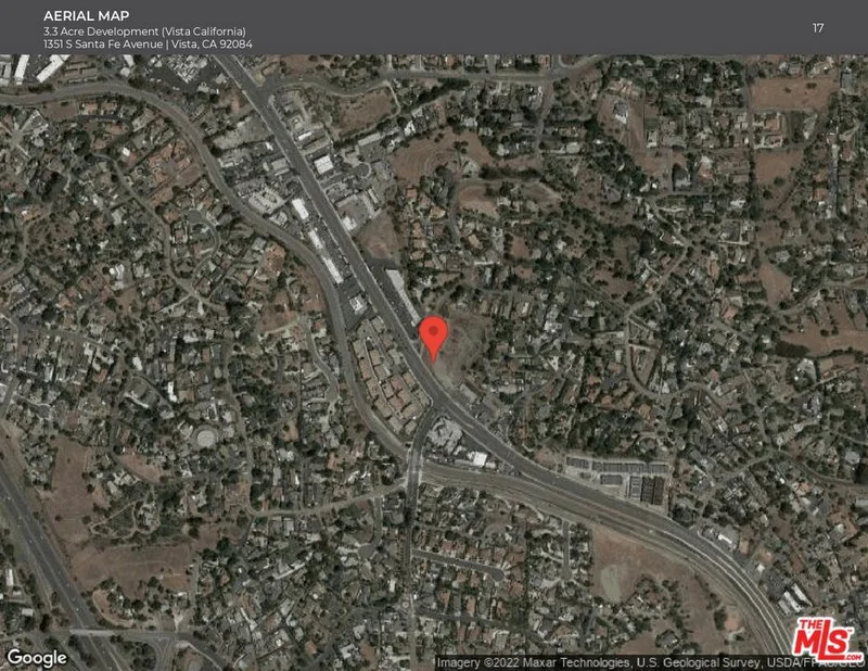 We are proud to exclusively present the Vista California Development located at 1351 S Santa Fe Avenue, Vista, California. This 3.36-acre (146,361 SF) corner parcel, zoned R-M (Medium Density Residential), is prominently situated along the South Santa Fe Avenue Corridor an area undergoing significant transformation under the City of Vista's South Santa Fe Corridor Specific Plan. The property features topography, 290 feet of frontage, and full utility access, creating an ideal foundation for a streamlined and high-quality residential development opportunity. Positioned within a rapidly growing North San Diego County submarket with a population exceeding 100,000 residents, the site sits directly across from a newly completed townhome community and is surrounded by housing, schools, and local retail amenities. Vista continues to experience strong demographic growth, supported by a median household income of approximately $78,800 within one mile, reflecting robust local demand for attainable and modern housing options. The property's R-M zoning offers flexibility for small-lot, townhome, or condominium projects, allowing builders to capture both for-sale and for-rent housing demand. With utilities to the street, no replacement housing requirements, and inclusion in an active redevelopment corridor, the site provides a clear entitlement path and favorable economics for a range of residential configurations. Its strategic proximity to major employment and educational hubs, Kaiser Permanente Vista, Tri-City Medical Center, and California State University San Marcos further strengthens the project's long-term viability and absorption potential. Located minutes from North County Square, Vista Village Center, and LEGOLAND California, the property also enjoys excellent regional connectivity via Highway 78, Interstate 5, and Interstate 15. With its combination of scale, zoning, infrastructure readiness, and prime corner positioning within one of North County's most active residential corridors, 1351 S Santa Fe Avenue represents a premier infill development opportunity offering both immediate feasibility and strong long-term appreciation potential.