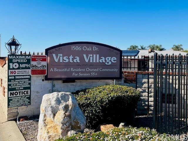 Discover comfort, character, and convenience in Vista Village. This detached 2-bed, 2-bath manufactured home (approx. 1,440 sq ft per CA Registration) is land-owned in the Vista Village 55+ community. Offering a single-story layout with a large living room, a dining area with a built-in cabinet, a full kitchen, and two full bathrooms. Street-level setting, covered carport, driveway parking, and possible RV parking within the community. The HOA covers water, trash, internet, cable, and common-area maintenance. The amenities include a heated pool, spa, clubhouse, fitness center, recreation room, library, BBQ/picnic areas, and landscaped grounds. Convenient to shopping and services along East Vista Way, walking distance to Albertsons, Better Buzz Coffee, and a short drive to the Vista Transit Center, Alta Vista Botanical Gardens, Brengle Terrace Park, and Guajome County Park.