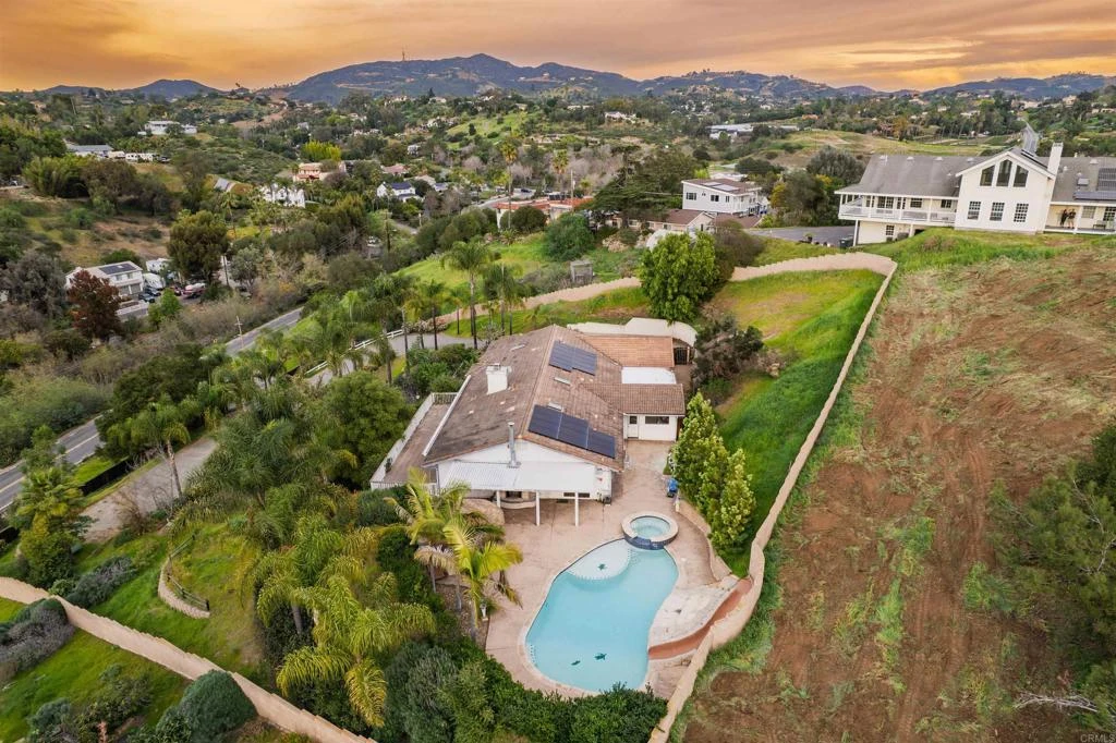Owned solar, panoramic views, and nearly an acre of space! Welcome to 1567 Monte Vista — a sprawling single-story home offers exceptional privacy, versatility, and sweeping vistas. From the expansive view deck, enjoy breathtaking panoramic views and unforgettable sunsets that make this property feel like a private hillside retreat. The generous hillside lot provides room to spread out and enjoy — complete with space for RV parking and beautifully diverse landscaping that bursts with color in the spring. From multiple vantage points, the home feels like a private escape above it all. Inside, high ceilings and an open, airy layout create a spacious feel throughout. The impressive kitchen serves as the heart of the home, anchored by a massive center island that’s perfect for entertaining or a home chef’s dream workspace. Built-in double ovens, a gas burner cooktop, a Bosch dishwasher, and sleek stainless steel appliances offer both function and style. Recent upgrades include custom shutters throughout most rooms and a beautifully remodeled primary bathroom. Energy efficiency is another standout feature, with fully owned solar (just 3½ years old) and battery storage for electricity generation, backup capability, and potential EV charging in the garage. The home also features a spacious 3-car garage, offering ample room for vehicles, storage, or hobbies. The backyard is designed for making memories. The sparkling pool — replastered approximately four years ago — features a slide and water feature that adds fun for all ages. A remodeled outdoor kitchen with new palapa-style roofing creates the perfect setting for gatherings, weekend barbecues, and sunset evenings under the open sky. With nearly an acre of land, panoramic views, a sprawling single-story layout, and space to truly make it your own, 1567 Monte Vista offers a rare opportunity to enjoy room to breathe in a stunning hillside setting.