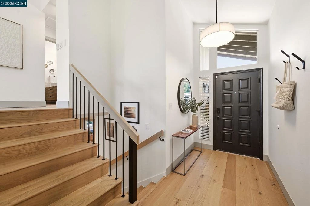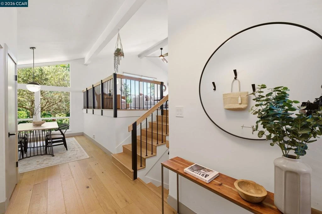 Situated atop a hill in the highly desirable Palos Verdes neighborhood, this fully renovated 4-bedroom, 2-bath home blends modern luxury with a serene natural setting. Thoughtfully updated with high-end finishes throughout, it’s also zoned for top-rated Walnut Creek schools within the Acalanes Union High School District. Enjoy panoramic views of Mount Diablo from multiple vantage points. Start your mornings in a private garden surrounded by redwoods and fruit trees, or explore nearby trails, streams, and ponds just moments away. The backyard is a true standout, featuring mature landscaping, a spacious view deck, and a private trail. Lush grounds include a variety of fruit trees and flowers, your own outdoor retreat. Inside, engineered white oak flooring, custom woodwork, and a sleek updated fireplace create a warm, modern feel. The kitchen offers custom cabinetry, quartz countertops, and premium appliances, while the bathrooms feature high-end finishes, including a curbless walk-in shower and deep soaking tub. Recent upgrades such as new HVAC, water heater, and smart home features add comfort and convenience. Unwind at sunset with hillside views or relax in the light-filled primary suite. With two separate living areas and a prime location near shopping, dining, BART, and freeway access, this home offers both privacy and everyday comfort. Don’t miss this rare opportunity.