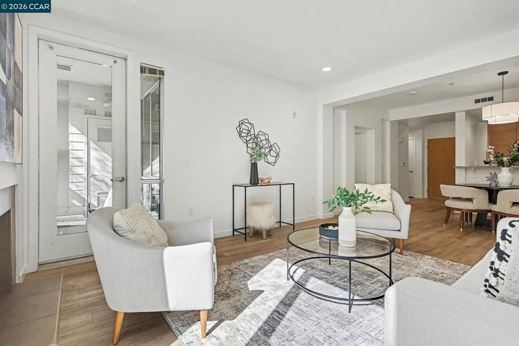 Bright, updated end-unit condo with only one shared wall for added privacy. Corner location brings in abundant natural light with an extra high row of windows facing North, while the quiet rear setting minimizes street noise. Recent upgrades (March/April) include new luxury vinyl plank flooring, new carpeting, fresh paint, new energy efficient LED lighting in the living room and bedrooms (including finaled City permits), new range/oven, new microwave, newer dishwasher (November 2025), new dining room light, and refreshed grout—truly move-in ready and turnkey. Just bring your belongings and settle in. Open kitchen overlooks the living area and features a Sub-Zero refrigerator, stone countertops, and new kitchen appliances. Includes a laundry room with full-size washer/dryer and extra storage. Enjoy the Mercer's resort-style amenities: lap pool, spa, fitness center, BBQ area, and clubhouse. Prime downtown Walnut Creek location near shopping, dining, entertainment, and just blocks to BART. West facing for late filtered afternoon sunlight and overlooking a beautiful grove of bamboo. A pleasure to show, will not disappoint. Seller has spent thousands in the first quarter of 2026 upgrading this amazing condominium home.
