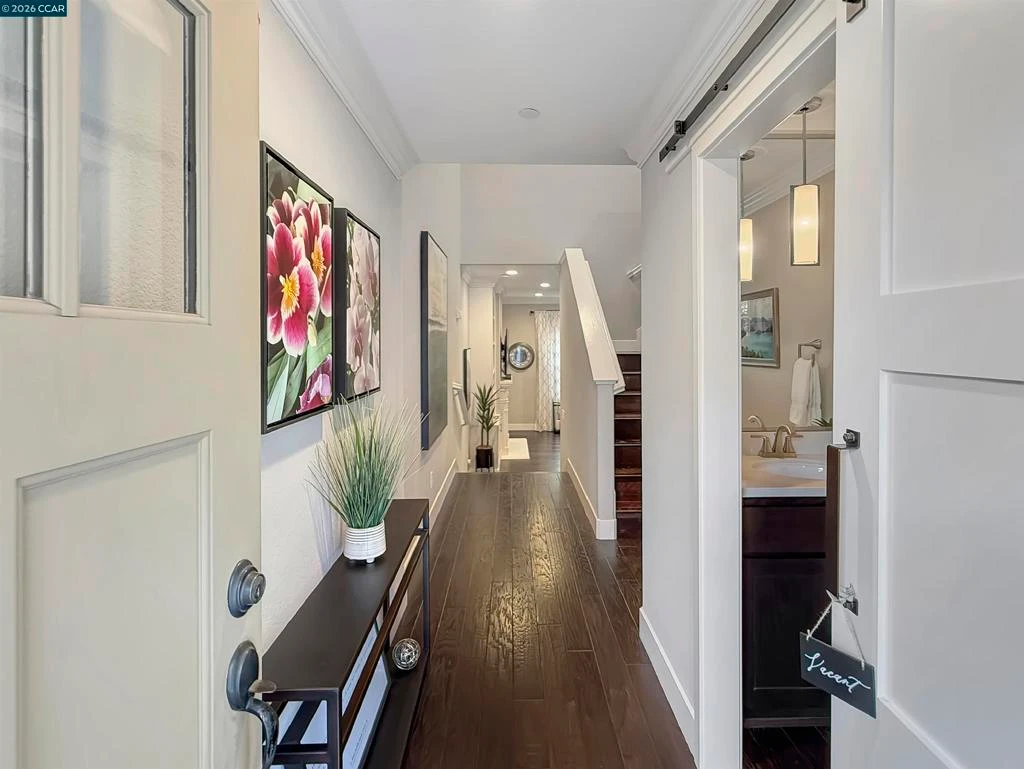 Welcome to 2291 Overlook Drive, a stunning 2015-built townhome offering contemporary design and unbeatable walkability in one of Walnut Creek's most desirable locations. Soaring ceilings, rich hardwood floors, crown molding, and recessed lighting flow throughout the open-concept main level. The living room features floor-to-ceiling built-in shelving and a gas fireplace, while the chef's kitchen shines with stainless steel appliances, quartz countertops, and a large island. Step outside to your private deck with natural gas fire pit and built-in BBQ, overlooking serene woodland where deer and local wildlife roam, a tranquil escape steps from downtown. Upstairs, three spacious bedrooms include a master suite with spa-inspired ensuite featuring a floating tub, oversized shower, and walk-in closet with California Closet system. Two additional bedrooms share a jack-and-jill bathroom, plus dedicated laundry room and built-in workstation. The two-car garage features epoxy flooring and custom cabinetry. Located steps to Walnut Creek BART and vibrant downtown dining, shopping, and entertainment. This rare combination of modern amenities, outdoor living, and prime location makes 2291 Overlook Drive truly exceptional.