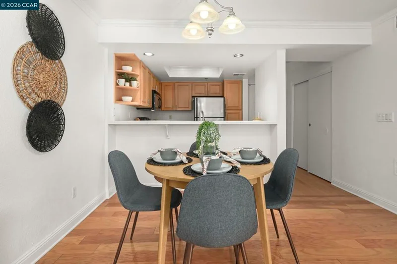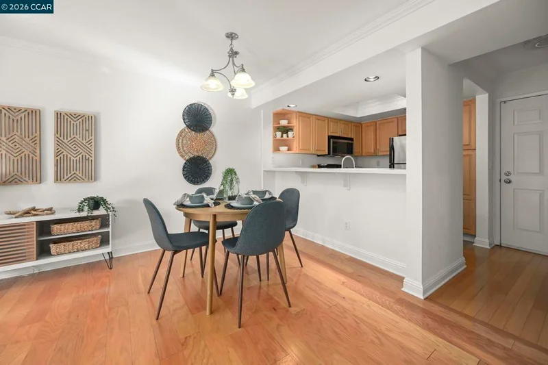 Exceptional opportunity at this price! Start your day with a cup of coffee in this light and airy end corner unit, perfectly tucked away at the back of the complex—so you can relax in peace without street noise. The spacious kitchen offers lots of storage and plenty of room for cooking. The open-concept living area flows seamlessly into the dining space, featuring a cozy gas fireplace that adds warmth and charm. The primary bedroom features an ensuite bathroom and plenty of closet space. 2nd bedroom and hall bath is perfect for guests. Convenient inside laundry and additional closet space. Also includes a private 1 car garage. Easy to access this level in unit with no stairs to entry. Enjoy the amenities with beautiful pool, spa, and BBQ area. Fabulous location close to BART, schools, parks, shopping and freeway access.