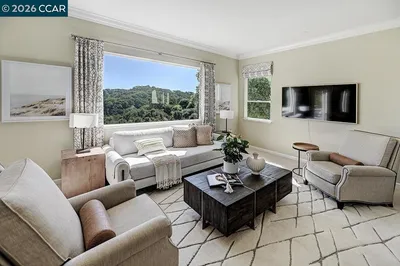 Perched to capture sweeping vistas of Mount Diablo and the surrounding hills, this beautifully appointed two-bedroom, two-bath plus den condominium offers a rare opportunity to own a premium residence in an exceptional setting. With no neighbor to the south, its sought-after southeast-facing orientation fills the home with natural light from morning through afternoon while showcasing panoramic views from nearly every main living space, creating a sense of privacy and tranquility seldom found in condominium living. Thoughtfully remodeled with quality craftsmanship and designer finishes, the open floor plan seamlessly connects the living, dining, and kitchen areas for effortless entertaining and everyday comfort. A spacious den provides flexibility for a home office or retreat. The serene primary suite features an updated en-suite bath and generous closets, while the guest bedroom and secondary bath offer comfort and style. Hardwood floors, crown molding, custom window treatments, and an attached garage with EV charger complete this exceptional home.