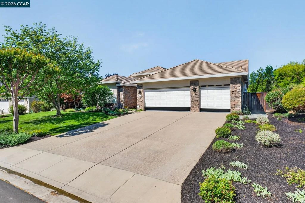 Nestled on a quiet cul-de-sac, 599 Timberleaf Ct is a stunning 4-bedroom, 2.5-bath Walnut Creek home offering 2,521 sq ft of thoughtfully designed living space. A stone-accented façade and 3-car garage set the tone, leading into a bright, open-concept interior with vaulted ceilings, wood-look flooring, and refined designer finishes throughout. A double-door home office provides a private, functional workspace, while expansive formal living and dining areas are filled with natural light. The chef’s kitchen serves as the centerpiece of the home, featuring a large granite island, crisp white cabinetry, and premium stainless steel appliances, all opening seamlessly to the inviting family room complete with a sleek fireplace and custom built-ins. The luxurious primary suite offers a peaceful retreat with direct access to the backyard and a spa-inspired ensuite, including a soaking tub, glass-enclosed shower, and dual vanities with modern black hardware. A custom walk-in closet adds both style and organization. Step outside through sliding glass doors to a beautifully manicured backyard—perfect for embracing California’s signature indoor-outdoor lifestyle. This turnkey home strikes the ideal balance of modern elegance and everyday functionality in a highly desirable location.