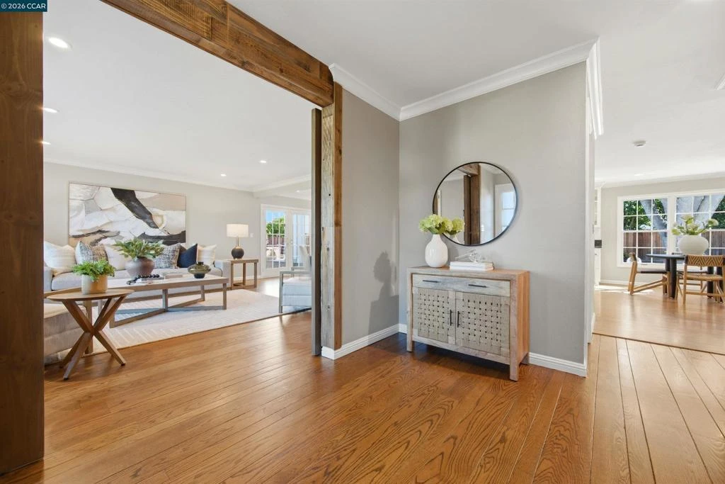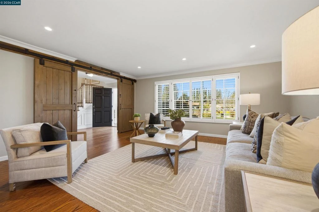 Spacious 5 bedroom, 2.5 bath home with 3,207 sqft on a premium court lot with a large south-facing backyard + solar. Formal living and dining rooms feature hardwood floors, plantation shutters and custom millwork. The updated eat-in kitchen includes granite counters, island seating, Sub-Zero refrigerator, Thermador Professional 6-burner gas cooktop, double ovens and dishwasher, with French doors opening to the backyard. The adjoining family room offers built-in shelving and a gas fireplace, while a separate large bonus/game room provides additional living space with French doors to the patio. Upstairs primary suite includes a sitting area, Mount Diablo views, walk-in closet and updated bath with dual sinks. Additional highlights: hardwood flooring through much of the home, dual A/C units, Tesla Powerwalls, new water heater, 3-car garage with attic storage and indoor laundry. Close to Northgate’s top-rated schools, parks, trails, swim clubs, shopping and dining.