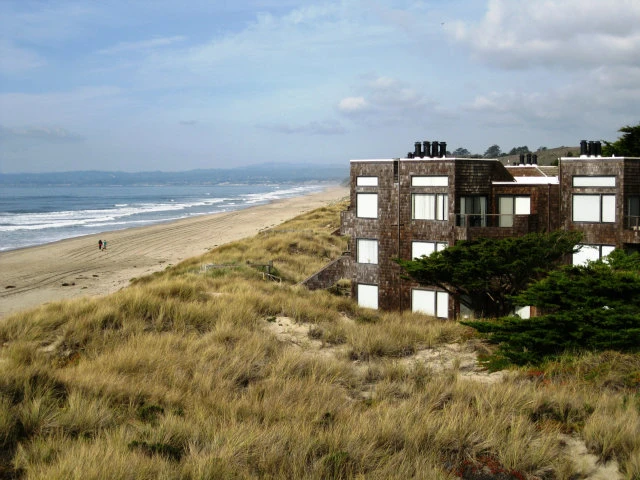 Oceanfront condo with ramp access from parking lot.Ground level with sand dune view & peek of blue water. Private beach access & on-property beach trail for those who do not wish to use stairs. Kitchen has been remodeled and moved to the front for more living space. Murphy bed in 2nd BDR. Many built-ins. May be vacation/long term rental primary home or keep as private beach home. Owner's pets OK.