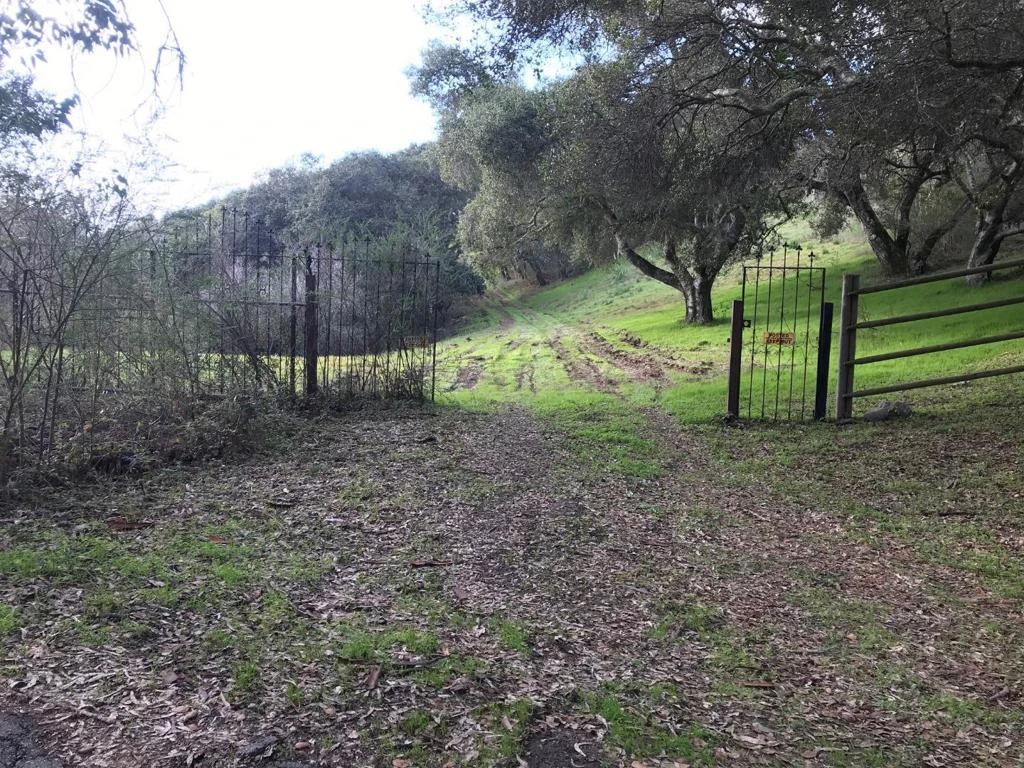 South-facing 20+ acre parcel in a gated community of fine homes. Excellent microclimate for a vineyard, 3-4 possible building sites. Easy access just past 400 Yellow Brick Road, best to park and walk in. A nice building site easily accessible, and another on a knoll below the shed area, and a few others. Many possibilities. Most of the lower part of the property is bordered by Dunlap Lane, some on White Road. Plenty of water for a well.